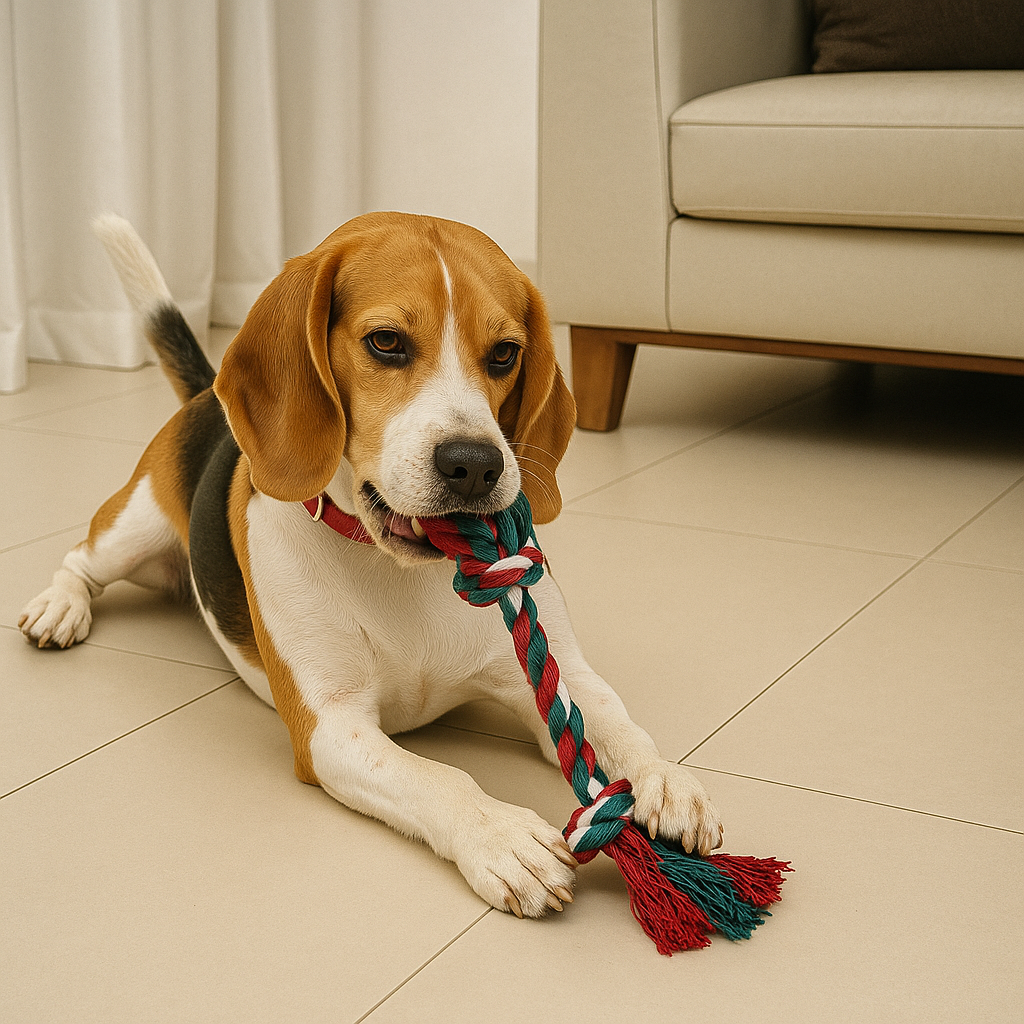 Ge din hund en säker och stimulerande leksak med detta slitstarka tuggben i 100 % bomull. Perfekt för lek, dragkamp och tuggande